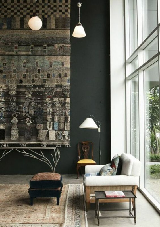 Textiel speelt de hoofdrol in onze interieurs. Sterker nog, we gaan onszelf ermee omringen. Dat tapijten niet alleen voor op de vloer zijn bewijst de terugkomst van het wandkleed. Het kan gebruikt worden als accent maar waarom niet de hele muur bekleden met tapijt? We zien zowel effen gekleurde tapijten, grof geweven exemplaren met losse franjes en tapijten met (grafische) prints.