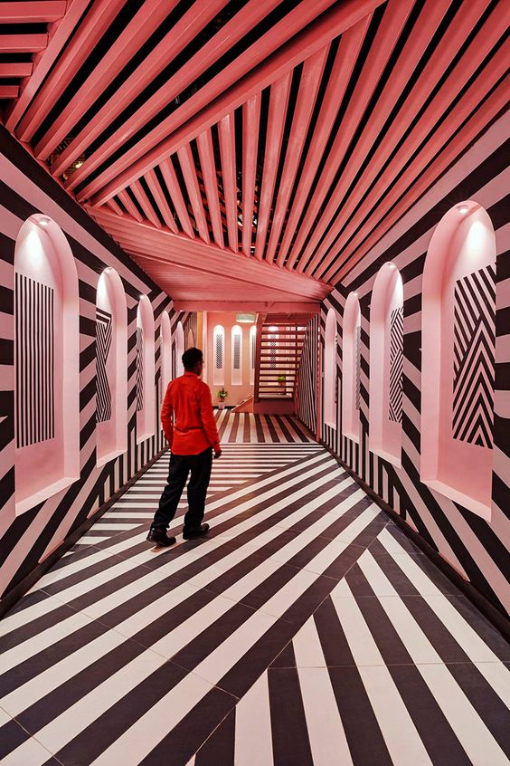 Designboom, Architect: RENESA architecture design interiors, Foto’s: Saurabh Suryan / Lokesh Dang: https://www.designboom.com/architecture/pink-zebra-feast-india-company-kanpur-india-renesa-03-29-2018/