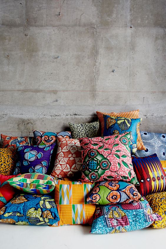 Ania Wawrzkowicz via African prints in fashion: https://www.africanprintinfashion.com/2015/11/just-beautiful-mixed-prints-in-interior-design.html