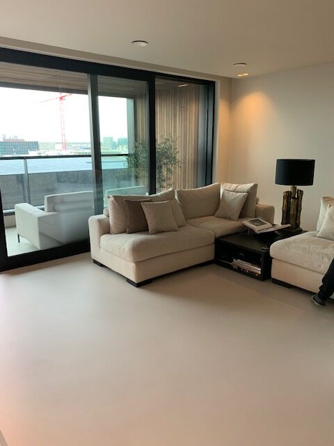 BOLD is een innovatieve woontoren in Amsterdam met een hightech uitstraling. Geheel in stijl met het exterieur hebben we een van de skyvilla’s voorzien van een chique gietvloer: