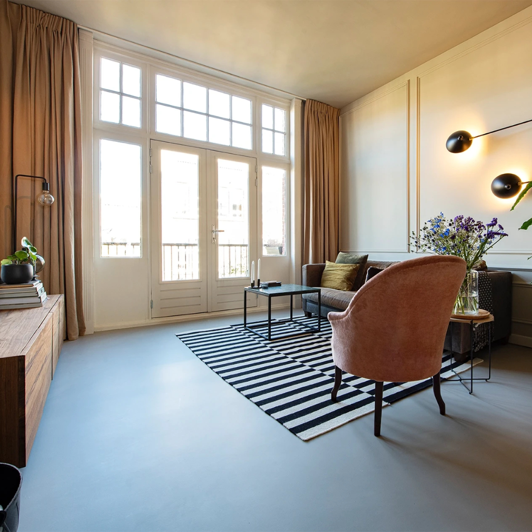 Voor een voormalig Leids schoolgebouw, dat werd omgevormd tot woningcomplex, hebben we een nieuwe vloer gerealiseerd. De vraag hierbij was of een goede kwaliteit gietvloer in combinatie met vloerverwarming over een houten vloer mogelijk was: