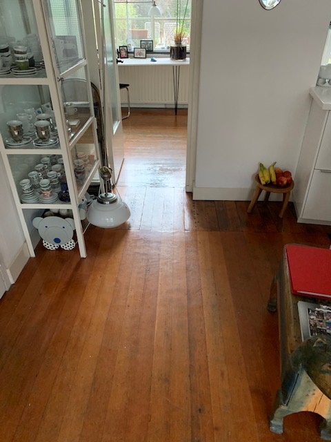 Voor een rek- en krimpvast resultaat is de houten vloer goed geëgaliseerd: