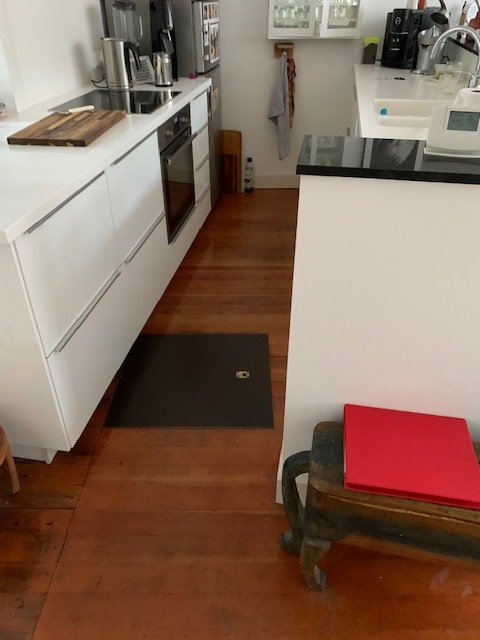 - Op de ondergrond zijn Fermacell gipsvezelplaten aangebracht en op verschillende plekken vastgeschroefd;