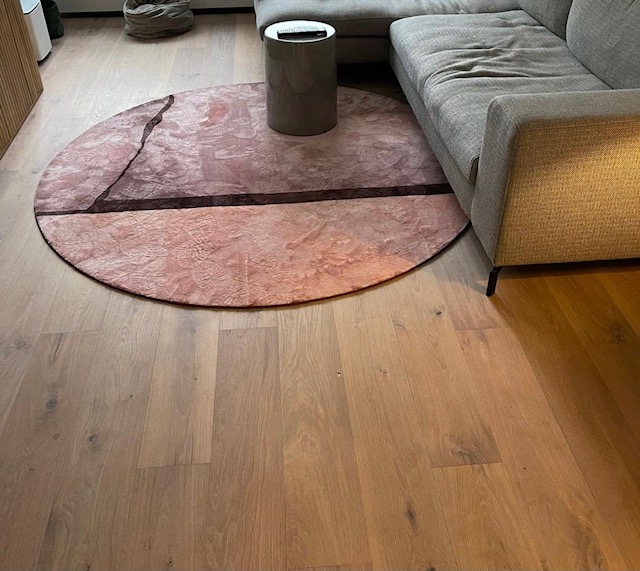 Nog altijd zijn ronde en natuurlijke vormen in trek in interieurs. Deze zijn vaak een alternatief voor de ‘traditionele’ vierkante vormen. Hierbij kun je denken aan ronde tafels, maar we zien de trend ook terugkomen in tapijtpatronen en karpetten. Zo heeft TREU interior specials voor een particuliere klant met dit project twee op maat gemaakte en bedrukte tapijten gerealiseerd die direct in het oog springen.
