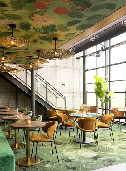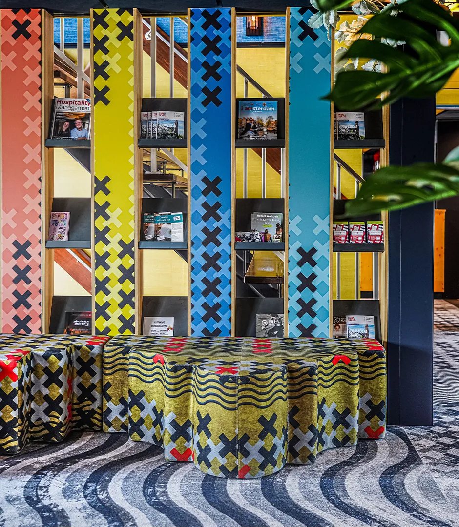Een ander project met een eclectische stijl is BOTEL in Amsterdam. In samenwerking met ESTIDA heeft TREU een duidelijk banenplan opgesteld, waarin de verschillende tapijtpatronen en -kleuren helder zijn gedefinieerd. Meer informatie over dit project vind je hier.