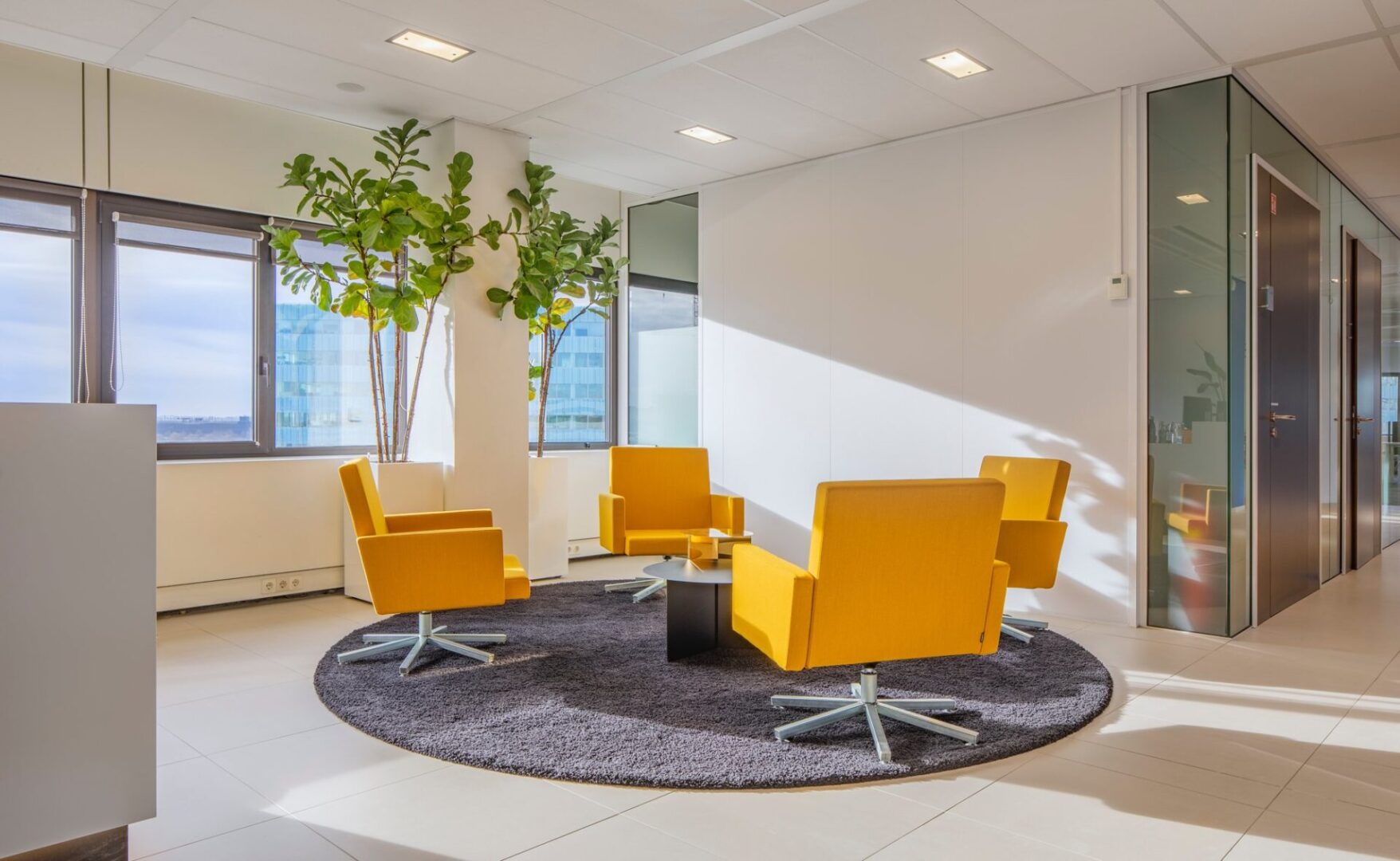 Nog altijd zijn ronde en natuurlijke vormen in trek in interieurs. Deze zijn vaak een alternatief voor de ‘traditionele’ vierkante vormen. Hierbij kun je denken aan ronde tafels, maar we zien de trend ook terugkomen in tapijtpatronen en karpetten. Zo heeft TREU interior specials voor een particuliere klant met dit project twee op maat gemaakte en bedrukte tapijten gerealiseerd die direct in het oog springen.