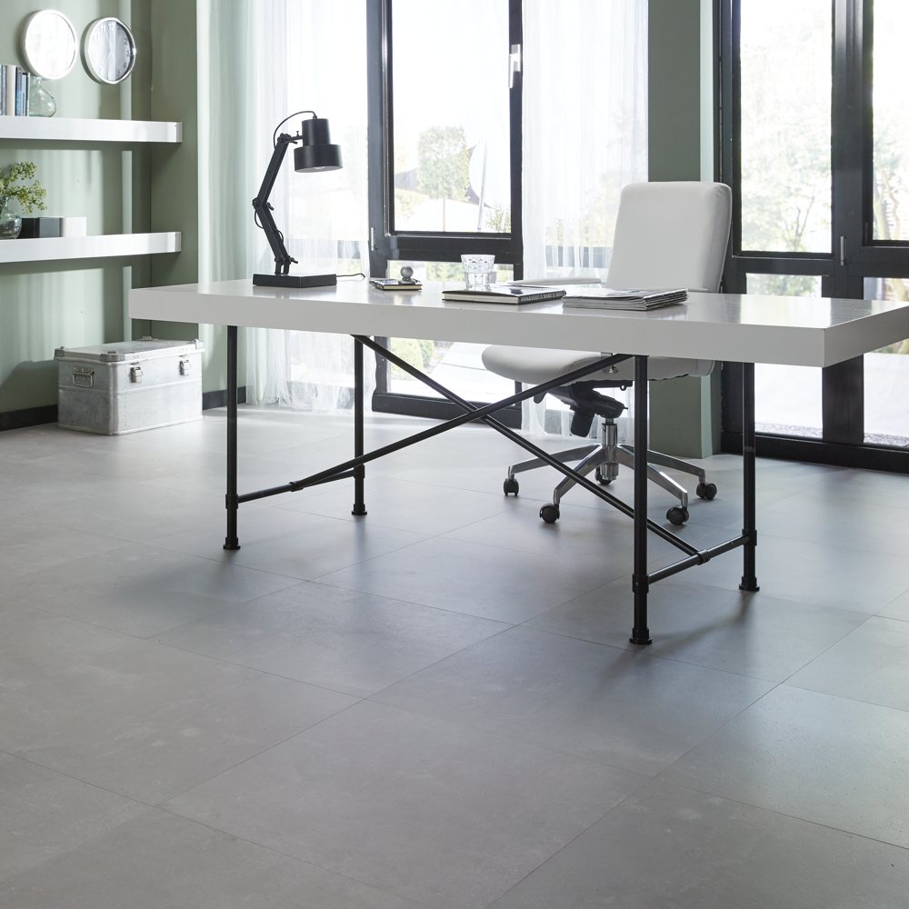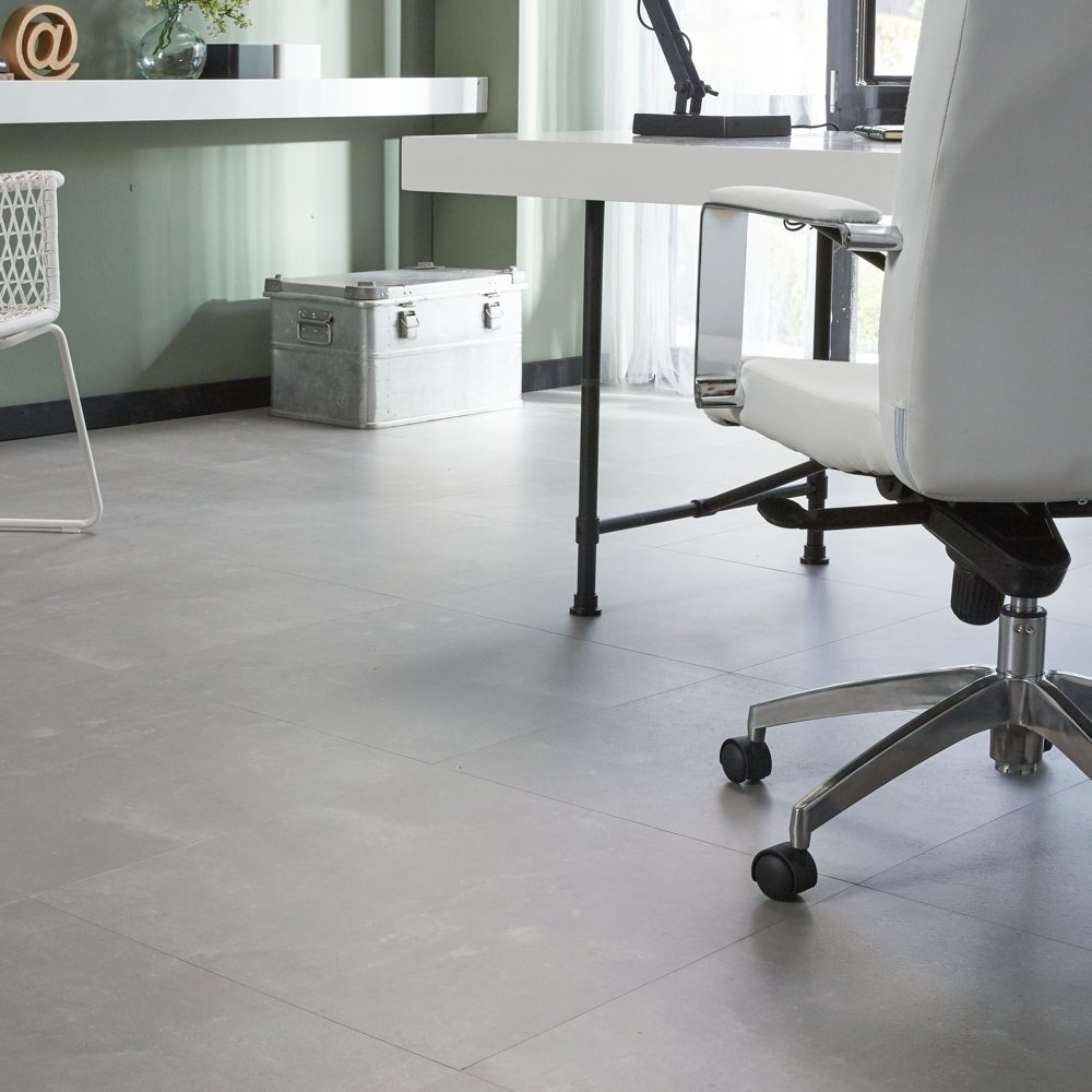 Met groot formaat betonlook PVC-tegels is dit effect goed na te bootsen en haal je de ultieme PVC gietvloer-look in huis. Wil je zien en/of ervaren wat deze vloer met een ruimte doet? Maak kennis met de mogelijkheden via onze PVC-vloeren brochure of in onze showroom te Leidschendam (alleen te bezoeken op afspraak).
