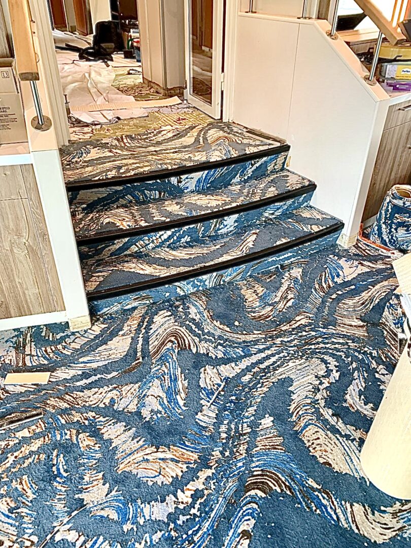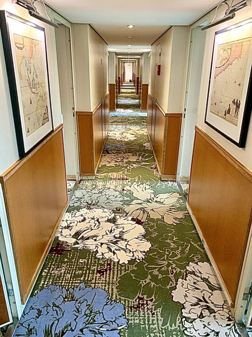 De door TREU geleverde tapijten van Halbmond vormen de rode draad door het interieur. Met een slimme afwisseling van dessins en kleurtinten sluiten de kamers, gangen en algemene ruimtes harmonieus op elkaar aan. In de kamers zorgen rustige kleuren van in combinatie met afwisselend subtiele en juist uitgesproken patronen voor een comfortabel en sfeervol geheel. De dessins van het scheepstapijt zijn levendig en detailrijk, maar blijven binnen een ingetogen palet, waardoor ze een gevoel van rust én karakter brengen. De gangen hebben daarentegen een meer uitgesproken visueel karakter. met een ritmisch patroon dat zorgt voor richting en beweging in de ruimte.