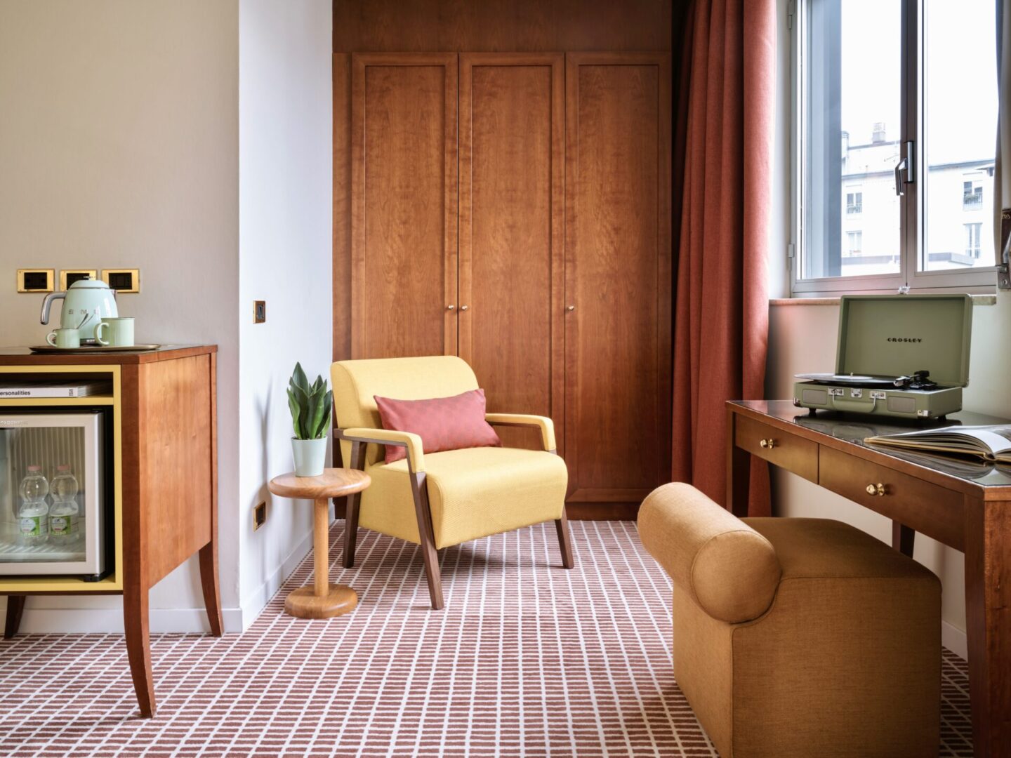 Max Brown Milan combineert nostalgie met eigentijdse luxe, wat zorgt voor een unieke verblijfservaring. Het zorgvuldig ontworpen interieur en de sfeervolle details zoals het op maat gemaakte tapijt brengen een tijdloze charme naar het hart van Milaan. Wil je jouw interieurconcept vertalen naar een op maat gemaakte, sfeervolle ruimte? We helpen je graag bij het realiseren van jouw droominterieur.