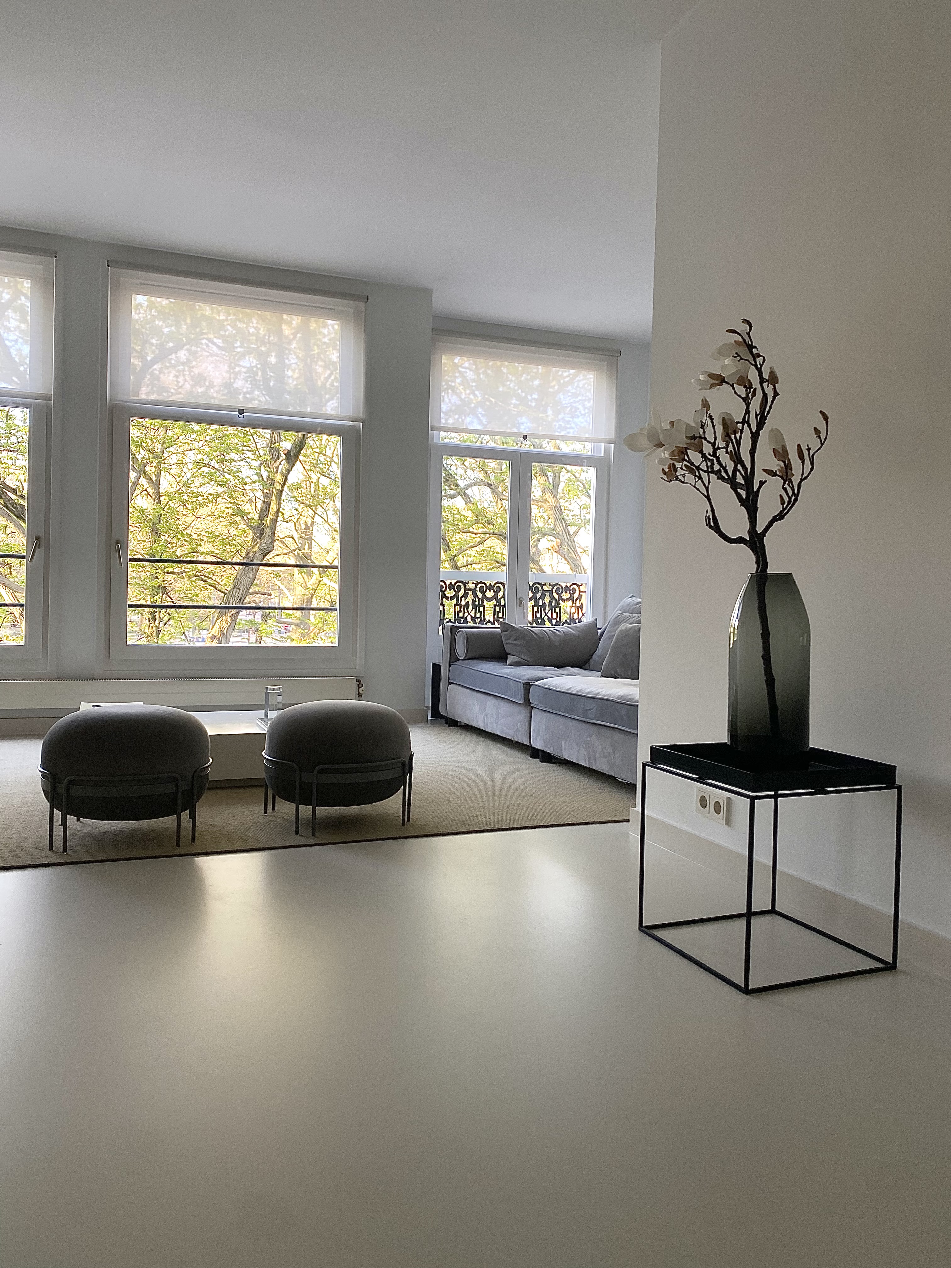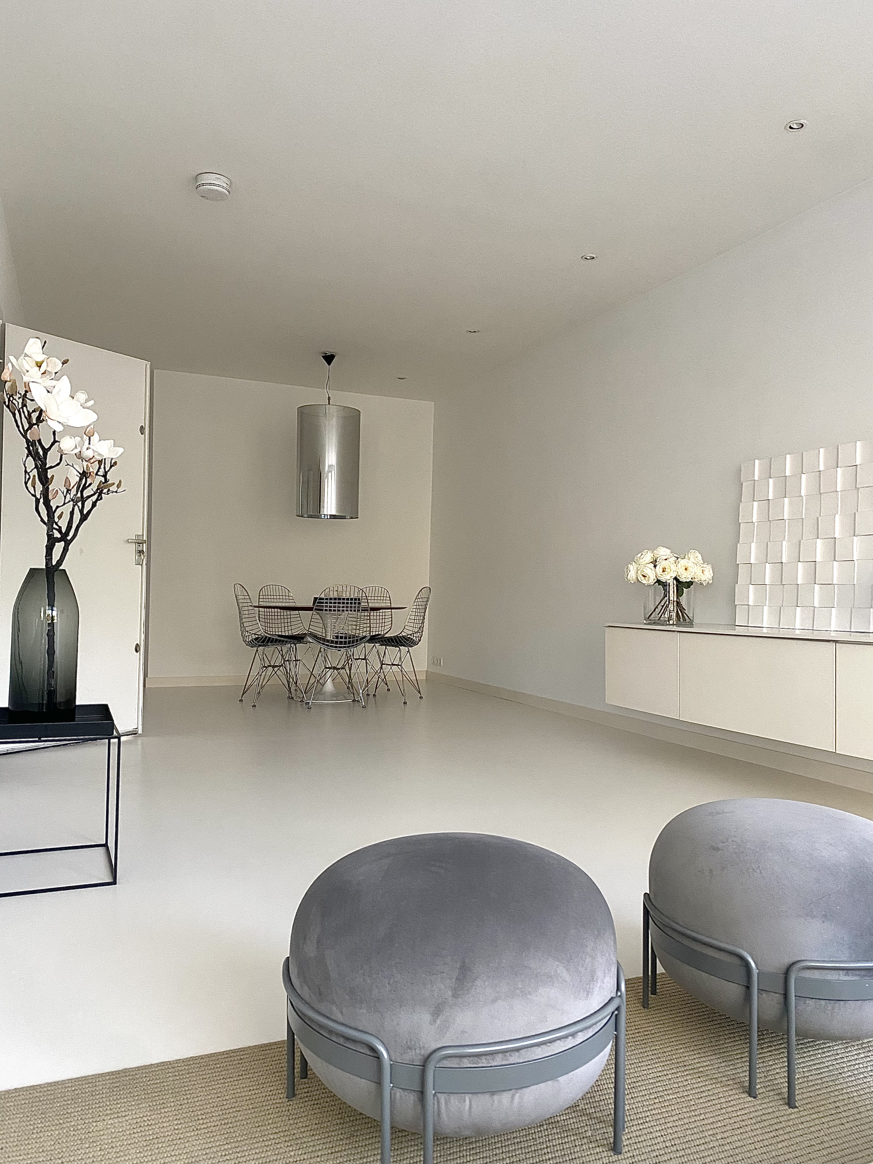 “De parelwitte gietvloer voelt niet alleen luxueus aan, maar creëert ook een gevoel van ruimte en natuurlijk licht in ons appartement.”